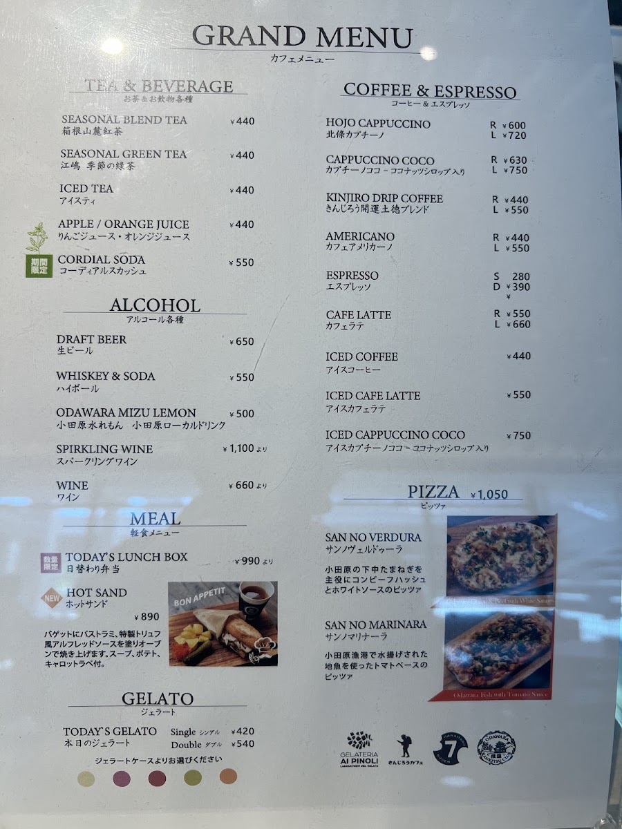 - ジェラート: Experience a taste of local favorites with cups priced at JP¥420 for a single, or enjoy a double scoop for JP¥540.